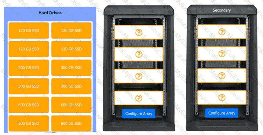 A natural disaster occurred, and the storage system for the development team is unrecoverable. The technician is preparing replacement storage arrays that include a hypervisor with the capacity to support several virtual machines. Two separate bays are available, and both should be utilized.