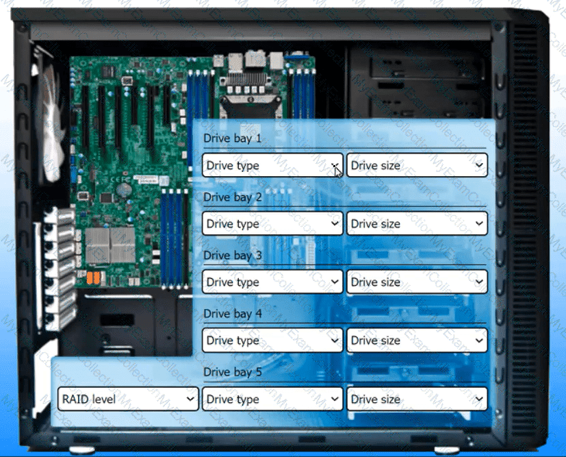 Use the drop-down menus to select the appropriate RAID level, drive types, and drive sizes based on the requirements above. For each drive type that is selected, a corresponding drive size must also be selected.