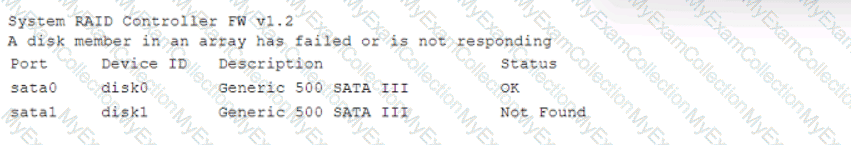 A technician receives several error alerts on a server after an unexpected reboot. A message states that one or more disks are in a degraded state. When the technician advances to the next error message, it indicates the OS is missing. Which of the following are the MOST likely causes of these errors? (Choose two.)