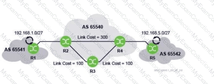 Which of the following routing protocols cannot be used between routers R2 and R4?