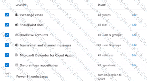 You are creating a data loss prevention (DLP) policy applied to the locations as shown in the following exhibit.