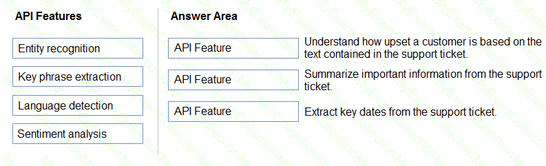 You plan to apply Text Analytics API features to a technical support ticketing system.