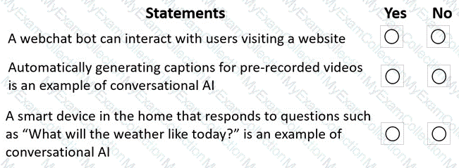 For each of the following statements, select Yes if the statement is true. Otherwise, select No.
