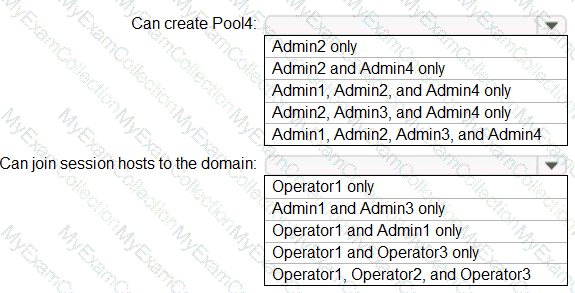 Which users can create Pool4, and which users can join session hosts to the domain? To answer, select the appropriate options in the answer area.