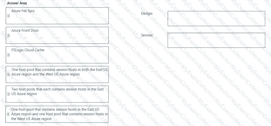 Which host pool design and which service should you configure to meet the disaster recovery requirements? To answer, drag the appropriate solution to the correct requirements. Each solution may be used once, more than once, or not at all. You may need to drag the split bar between panes or scroll to view content
