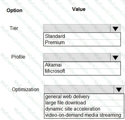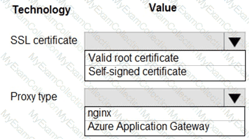 Which configuration values should you use? To answer, select the appropriate options in the answer area.