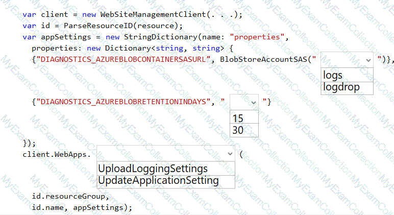 How should you complete the code? To answer, select the appropriate options in the answer area.