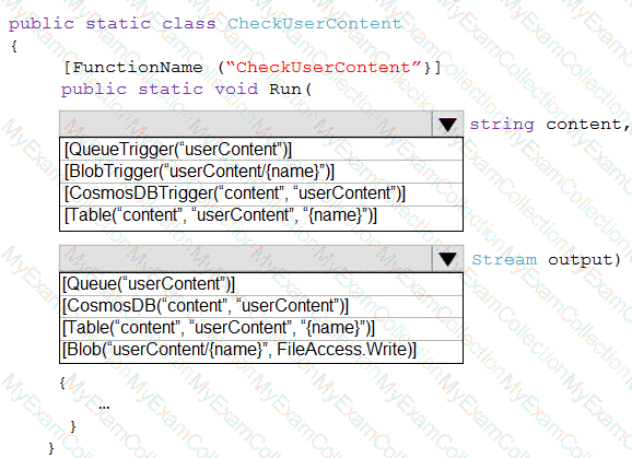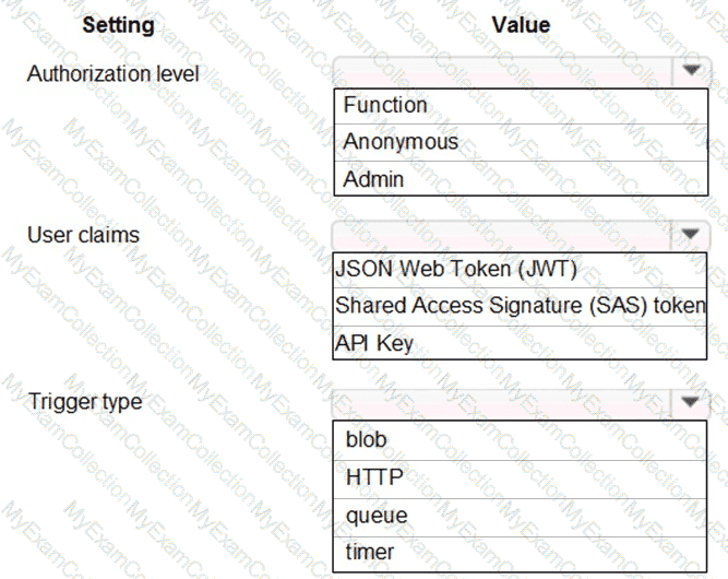 How should you implement the function? To answer, select the appropriate options in the answer area.