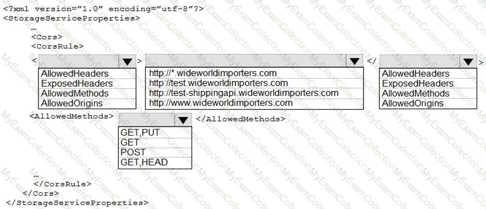 How should you configre the Azure Table Storage service? To answer, select the appropriate options in the answer area.