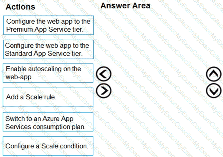 You need to ensure that the web app automatically scales when CPU load is about 85 percent and minimize costs.