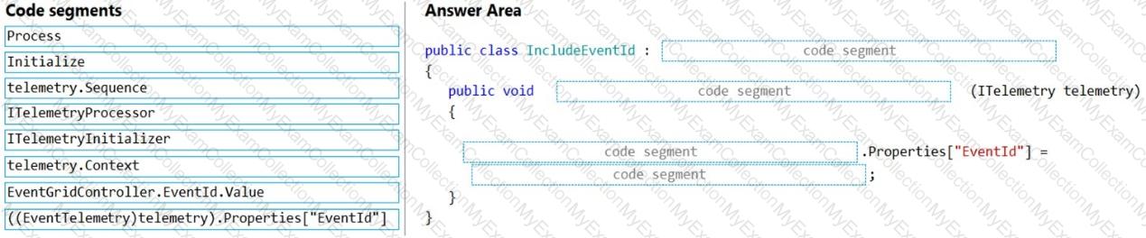 How should you complete the code? To answer, drag the appropriate code segments to the correct locations. Each code segment may be used once, more than once, or not at all. You may need to drag the split bar between panes or scroll to view content.