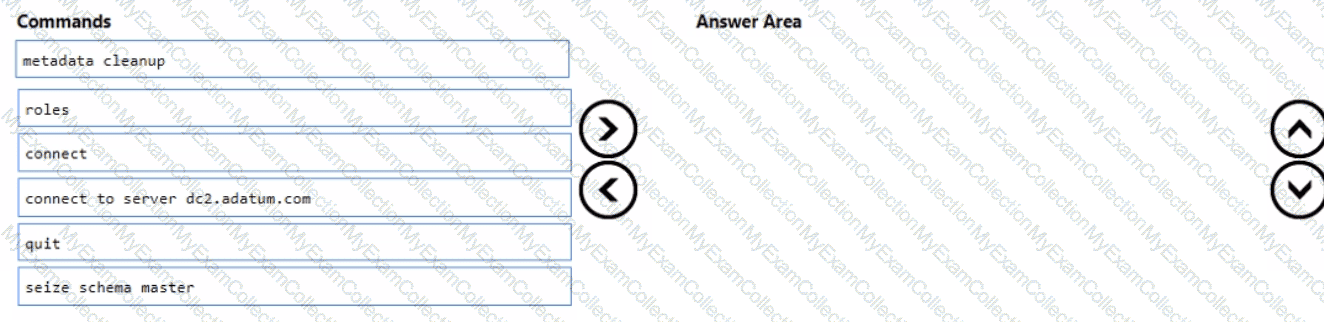 Which five commands should you run in sequence? To answer, move the appropriate commands from the list of commands to the answer area and arrange them in the correct order?