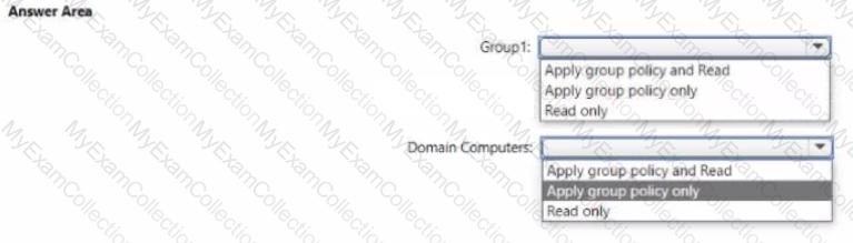 The AD DS domain contains a server named Server1 Server 1 contains a shared folder named share1.