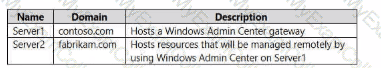 Your network contains two Active Directory Domain Services (AD DS) forests named contoso.com and fabrikam.com. A two-way forest trust exists between the forests. Each forest contains a single domain. The domains contain the servers shown in the following table.
