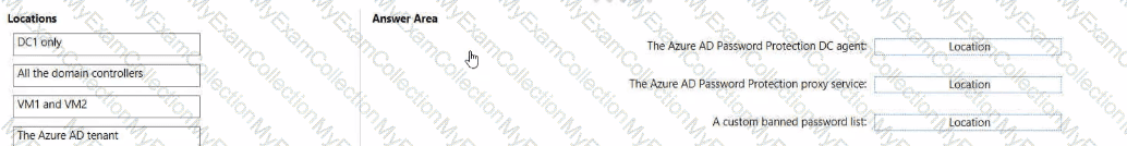 Where should you configure the components for Azure AD Password Protection? lo answer, drag the appropriate components to the correct locations. Each component may be used once, more than once, or not at all. You may need to drag the split bar between panes or scroll to view content.