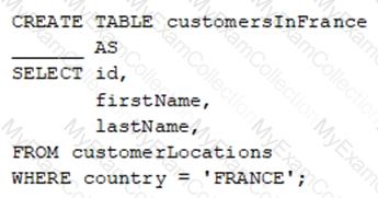 A data engineer wants to create a new table containing the names of customers that live in France.