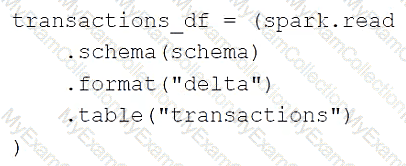 Which of the following changes needs to be made so this code block will work when the transactions table is a stream source?