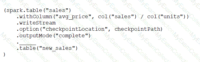 A data engineer has configured a Structured Streaming job to read from a table, manipulate the data, and then perform a streaming write into a new table.