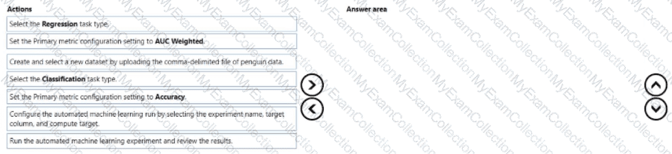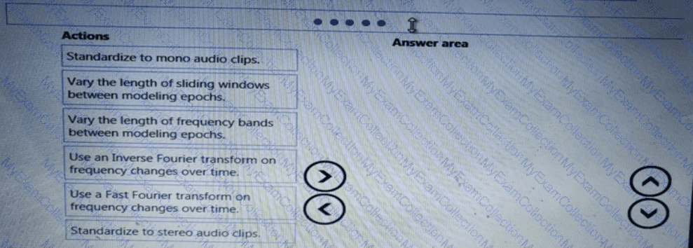 Which five actions should you perform in sequence? To answer, move the appropriate actions from the list of actions to the answer area and arrange them in the collect order.