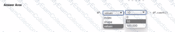 You load data from a notebook in an Azure Machine Learning workspace into a panda’s cat frame. The data contains 10.000 records. Each record consists of 10 columns.