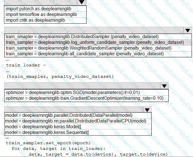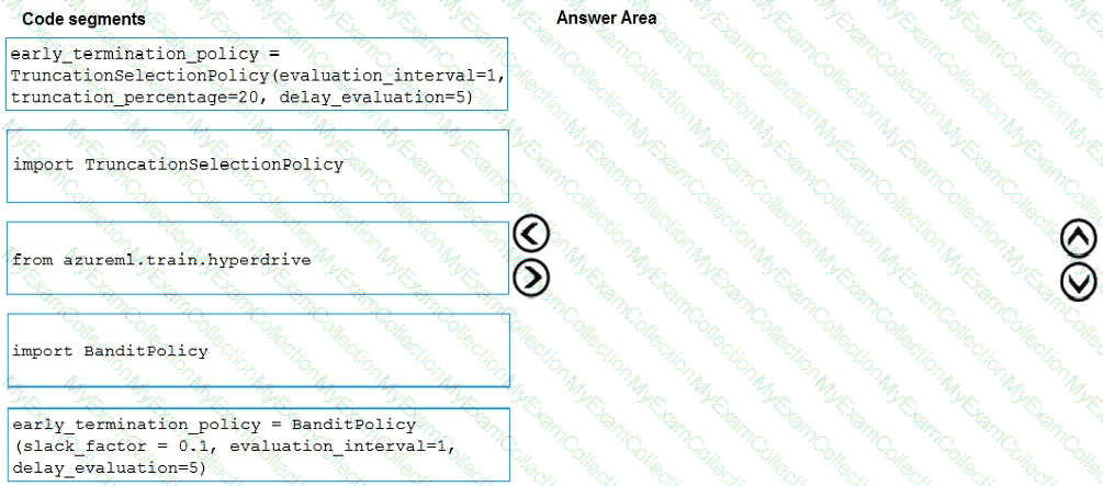 How should you complete the code segment? To answer, select the appropriate options in the answer area.