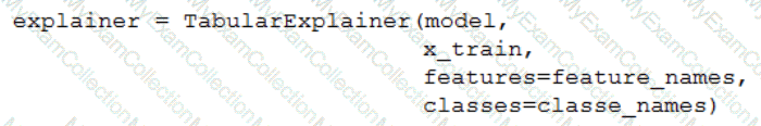 You create an estimator by running the following Python code. The variable feature_names is a list of all feature names, and class_names is a list of all class names.