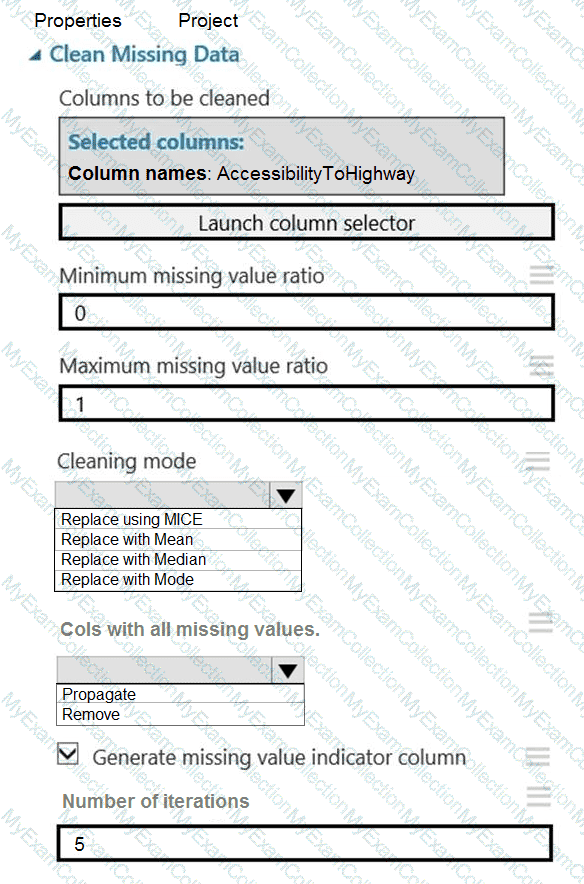 How should you configure the Clean Missing Data module? To answer, select the appropriate options in the answer area.