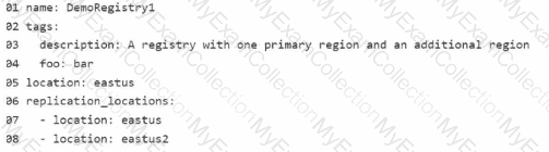 You plan to create a registry named registry01 with the help of the following registry.yml (line numbers are used for reference only):