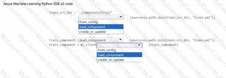 You plan to use Azure Machine Learning Python SDK v2 to register a component in the workspace The component definition is stored in the local file ./components/train/train.yml.