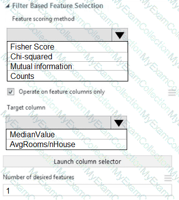 You are performing a filter based feature selection for a dataset 10 build a multi class classifies by using Azure Machine Learning Studio.