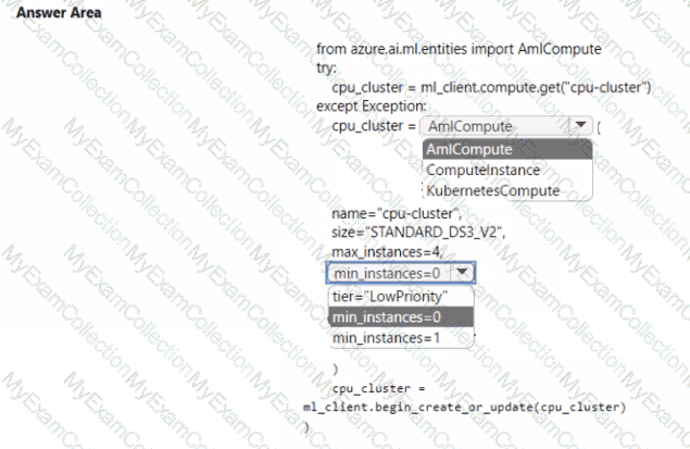The compute cluster must run a training script. Costs associated with running the training script must be minimized.