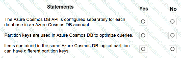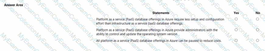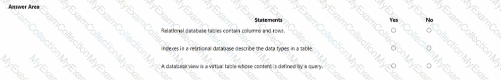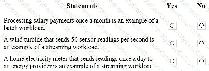 For each of the following statements, select Yes if the statement is true. Otherwise select No.