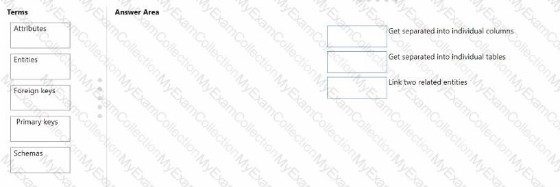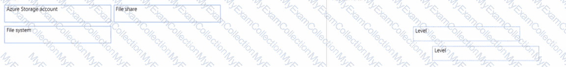 Match the Azure Data Lake Storage terms to the appropriate levels in the hierarchy.