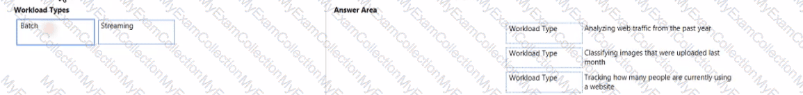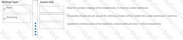 To answer, drag the appropriate workload type from the column on the left to its scenario on the right. Each workload type may be used once, more than once, or not at all.