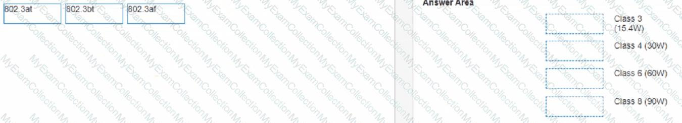 Match each PoE power class to Its corresponding 802.3 standard. (Options may he used more than once or not at all)