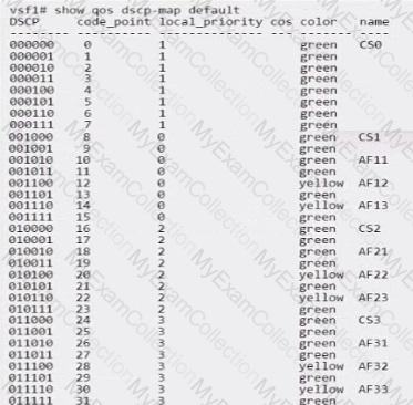 The ACME company has an AOS-CX 6200 VSF switch slack with an uplink over subscription ratio of 9.6:1. They have indicated that their low-priority TCP traffic has been flagged with a DSCP marking coloring them yellow.