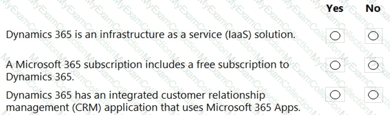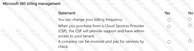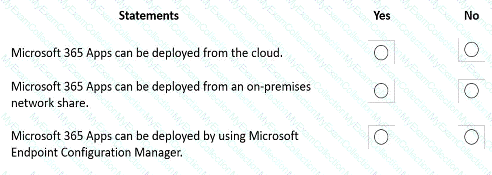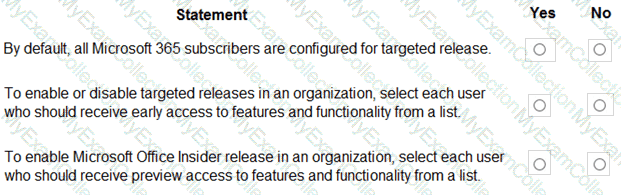 Instructions: For each of the following statements,select Yes if the statement is true. Otherwise, select No.