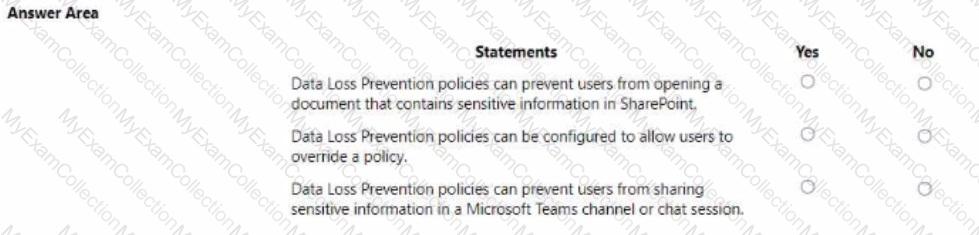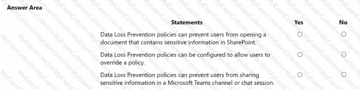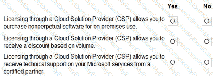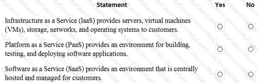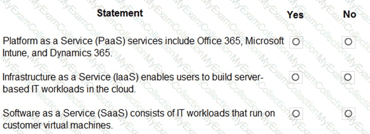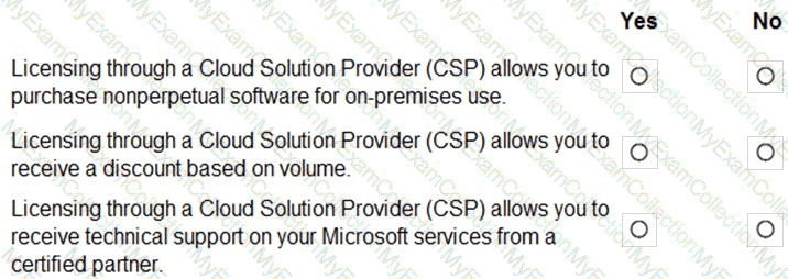 For each of the following statements, select Yes if the statement is true. Otherwise, select No.