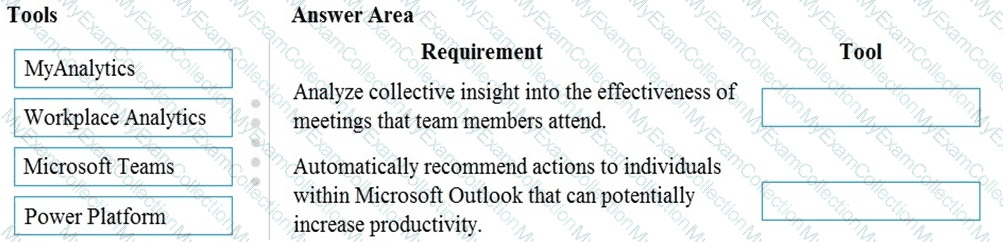 Which tool should you identifyfor each requirement? To answer, drag the appropriate tools to the correct requirements. Each tool may be used once, more than once, or not at all. You may need to drag the split bar between panes or scroll to view content.