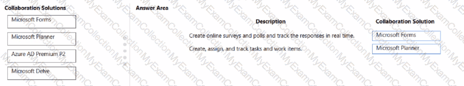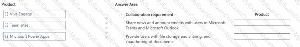 Which products should you recommend? To answer, drag theappropriate products to the correct collaboration requirements. Each product may be used once, more than once, or not at all. You may need to drag the split bar between panes or scroll to view content.