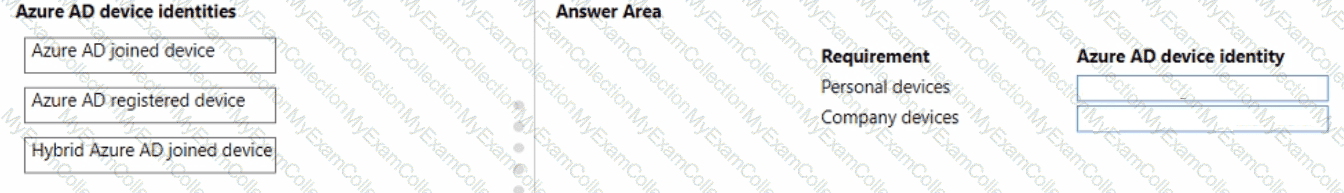 In the Microsoft 365 Device Management portal, which two blades should you use? To answer, select the appropriate options in the dialog box in the answer area.