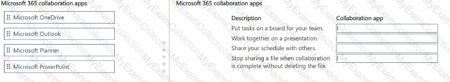 Match each collaboration app to its description. To answer, move the appropriate collaboration app from the column on the left to its description on the right. You may use each collaboration app once, more than once, or not at all.