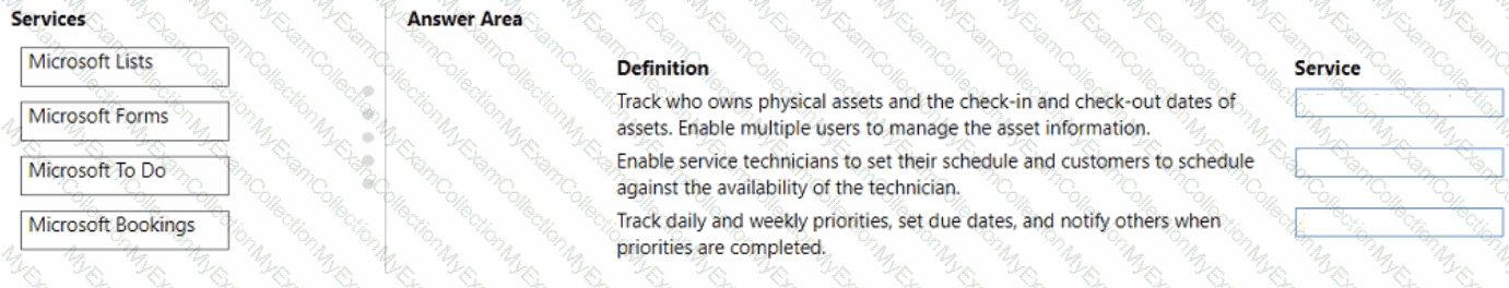 A company is evaluating the services provided in Microsoft 365. You need to ensure the servke meets the following requirements: