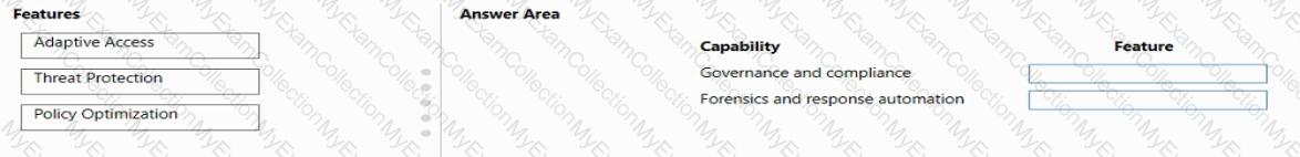 Which features should you choose? To answer, drag the appropriate features to the correct capabilities. Each feature may be used once, more than once, or not at all. You may need to drag the split bar between panes or scroll to view content.