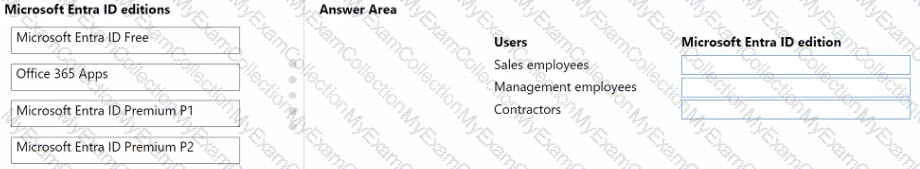 What should you use? To answer, drag the appropriate Microsoft Entra ID editions to the correct users. Each Microsoft Entra ID edition may be used once, more than once, or not at all. You may need to drag the splitbar between panes or scroll to view content.
