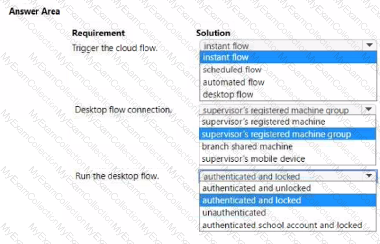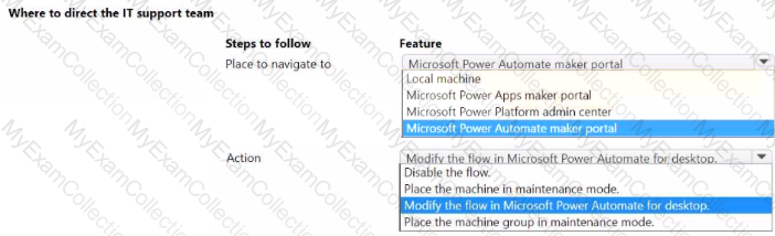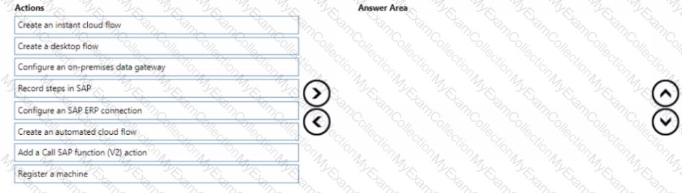 You need to configure the desktop action for the MaintenanceScheduler cloud flow. Which two actions should you perform? Each correct answer presents part of the solution. NOTE: Each correct selection is worth one point.