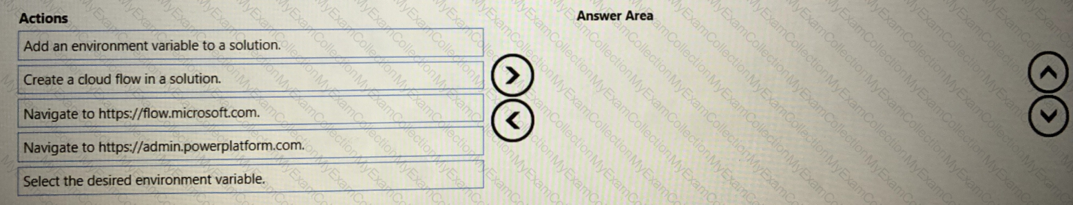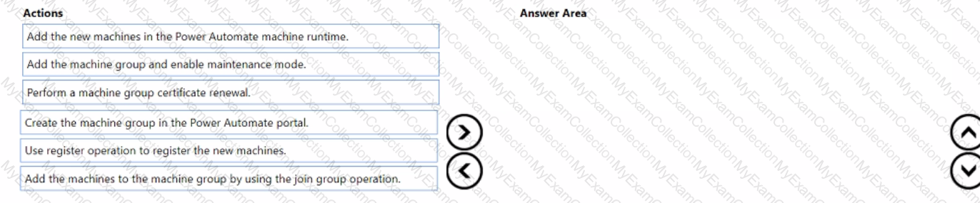 In which order should you perform the actions? To answer, move all actions from the list of actions to the answer area and arrange them in the correct order.