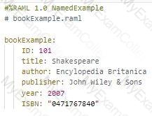 A company has defined two RAML fragments, Book Data Type and Book Example to be used in APIs.