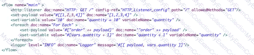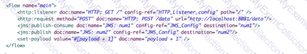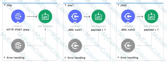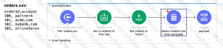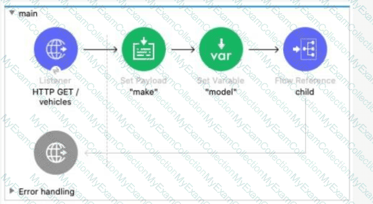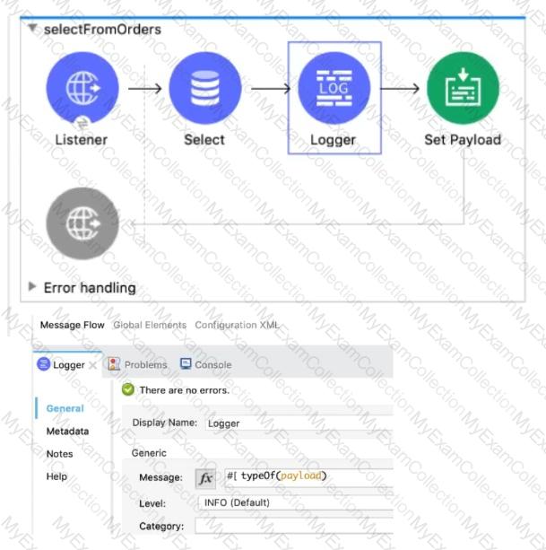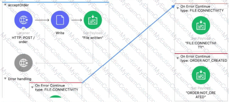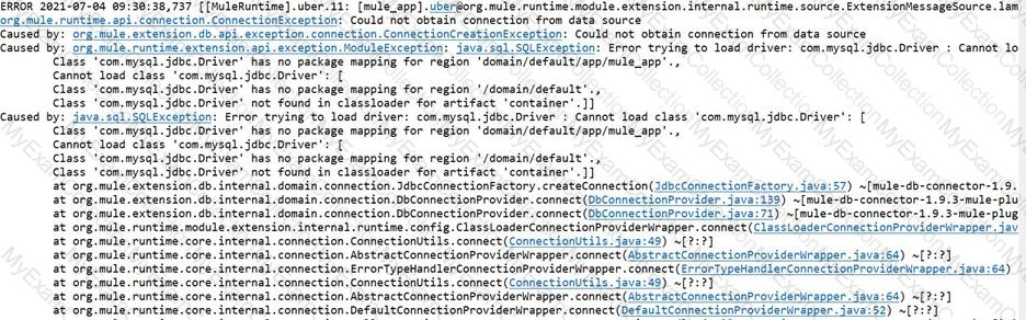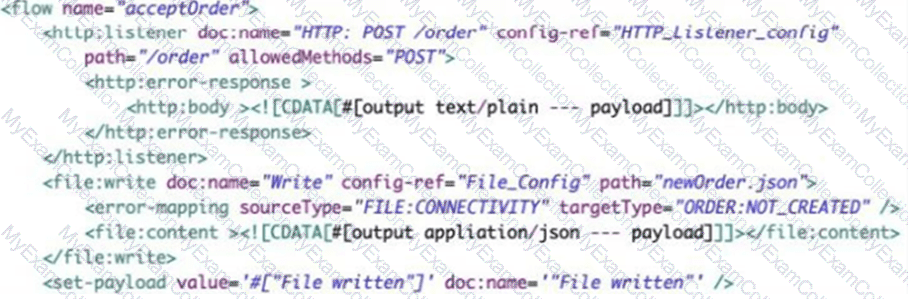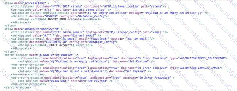 Refer to theexhibits The Mule application does NOT define any global error handlers.