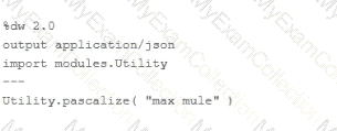 A Utility.dwl file is located in a Mule project at src/main/resources/modules. The Utility.dwl hie defines afunction named pascalize that reformats strings to pascal case.